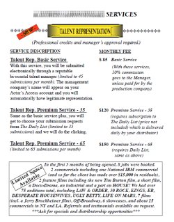 (With these services, 10% commission goes to the Manager, unless paid for by the production company)”