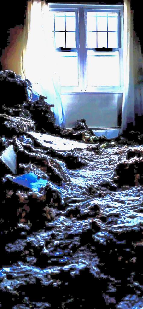 Russell was asleep when the fire — caused by a powerful electrical surge — began above him in the attic. He escaped his second floor apartment with only his laptop. and the clothes he hastily put on while running to safety.